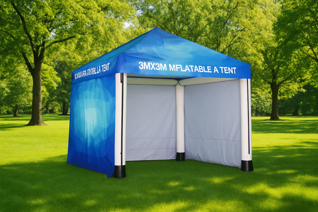 This 3x3m inflatable tent inflates in 3 minutes and sets up solo. Weighing just 25kg, it’s compact (55×47×47cm), easy to transport, and ideal for outdoor markets, pop-ups, and events. Features pre-assembled roof/legs, optional side walls, LED compatibility, and a clean, professional look. A cost-effective alternative to metal frame tents.